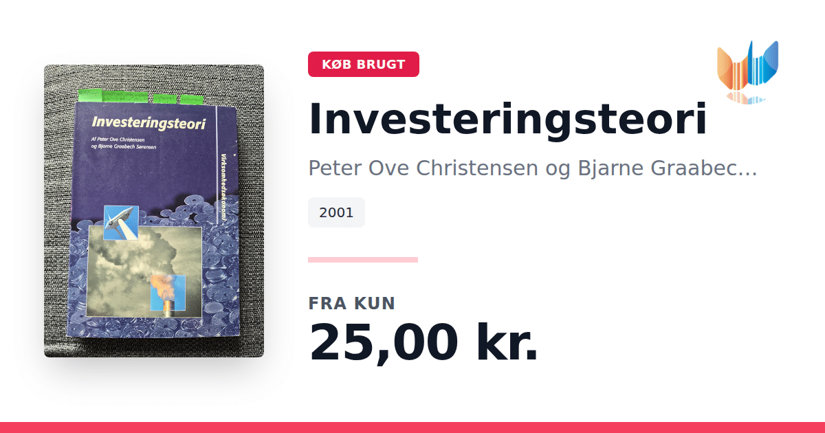 Lige nu kan du købe "Investeringsteori" af Peter Ove Christensen og Bjarne Graabech Sørensen til kun 25,00 kr. Bogen du ser her er brugt, og i god stand. Vi har i øjeblikket kun et enkelt eksemplar til salg af "Investeringsteori", så slå til mens du kan!