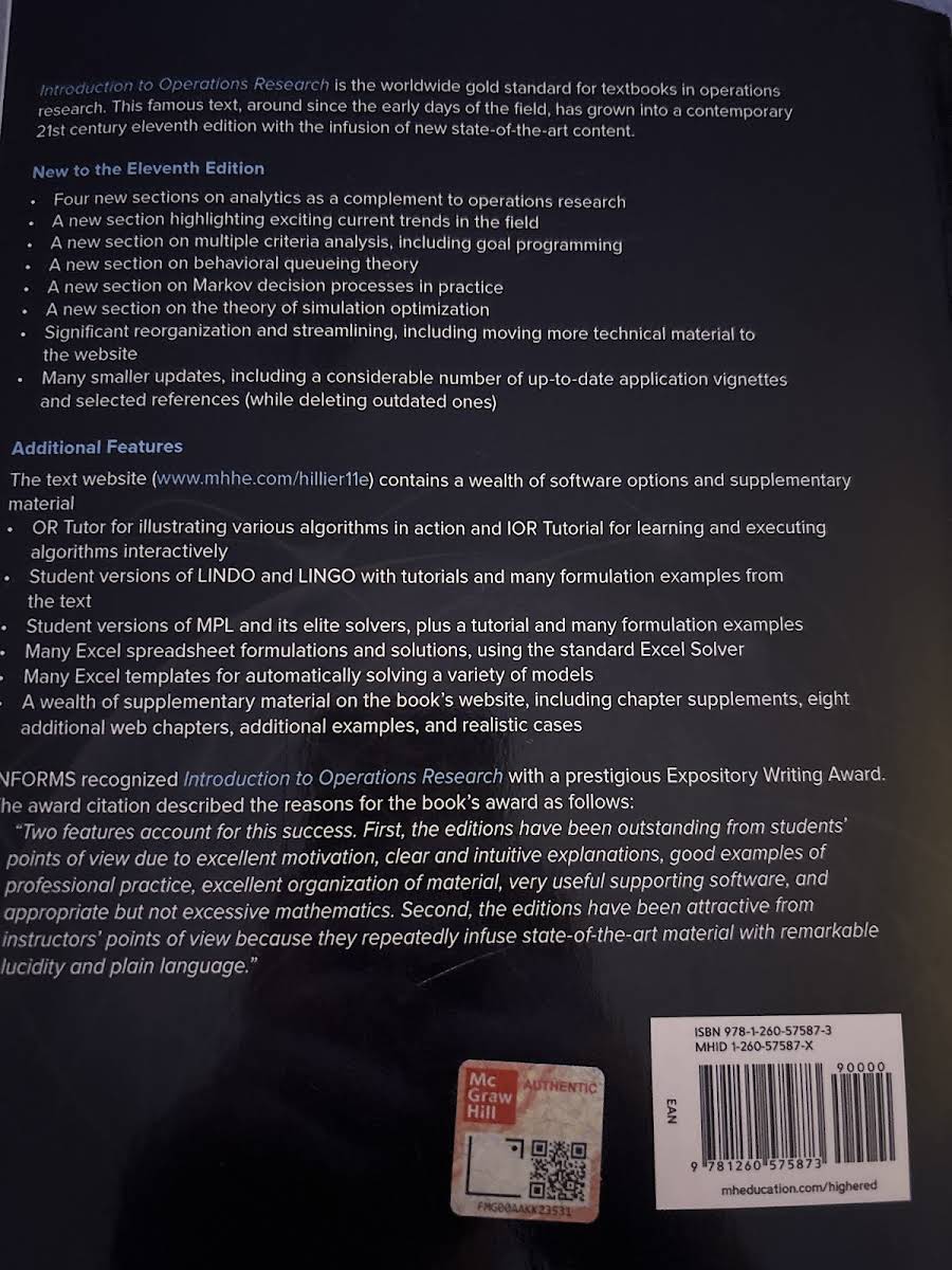 • ISE Introduction to Operations Research, Frederick Hillier, Gerald Lieberman, 9781260575873