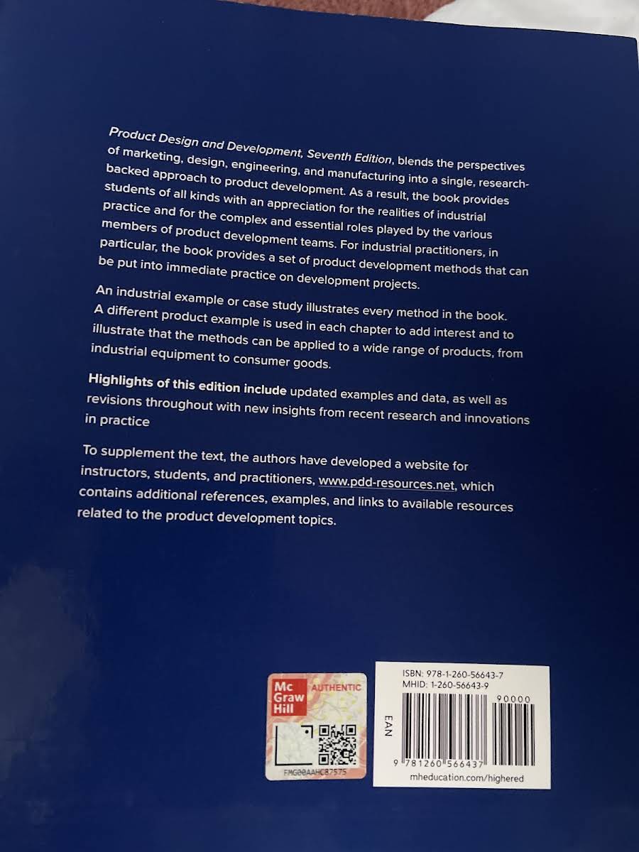 • ISE Product Design and Development, Karl Ulrich, Steven Eppinger, Maria C. Yang, 9781260566437