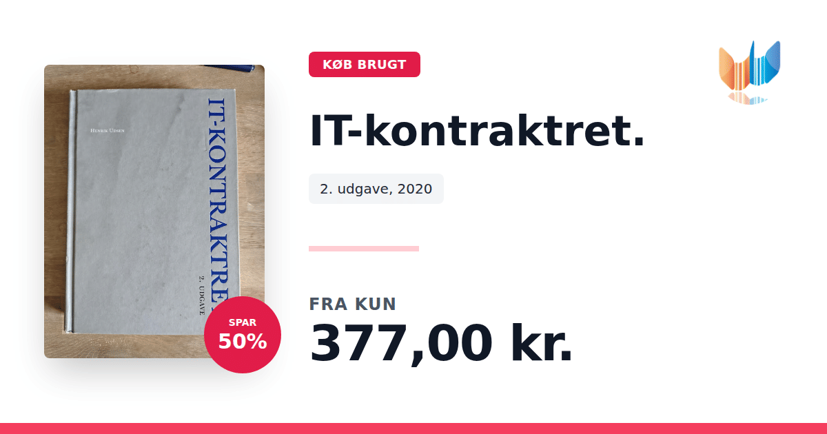 Lige nu kan du købe "IT-kontraktret." til kun 377,00 kr. Du sparer hele 50% af nyprisen! Bogen du ser her er brugt, og i god stand. Vi har i øjeblikket kun et enkelt eksemplar til salg af "IT-kontraktret.", så slå til mens du kan!