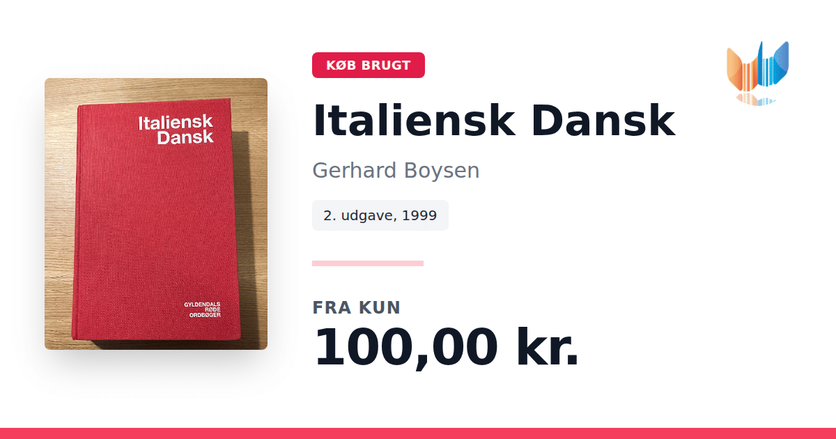 Lige nu kan du købe "Italiensk Dansk" af Gerhard Boysen til kun 100,00 kr. Bogen du ser her er brugt, og i perfekt stand. Vi har i øjeblikket kun et enkelt eksemplar til salg af "Italiensk Dansk", så slå til mens du kan!
