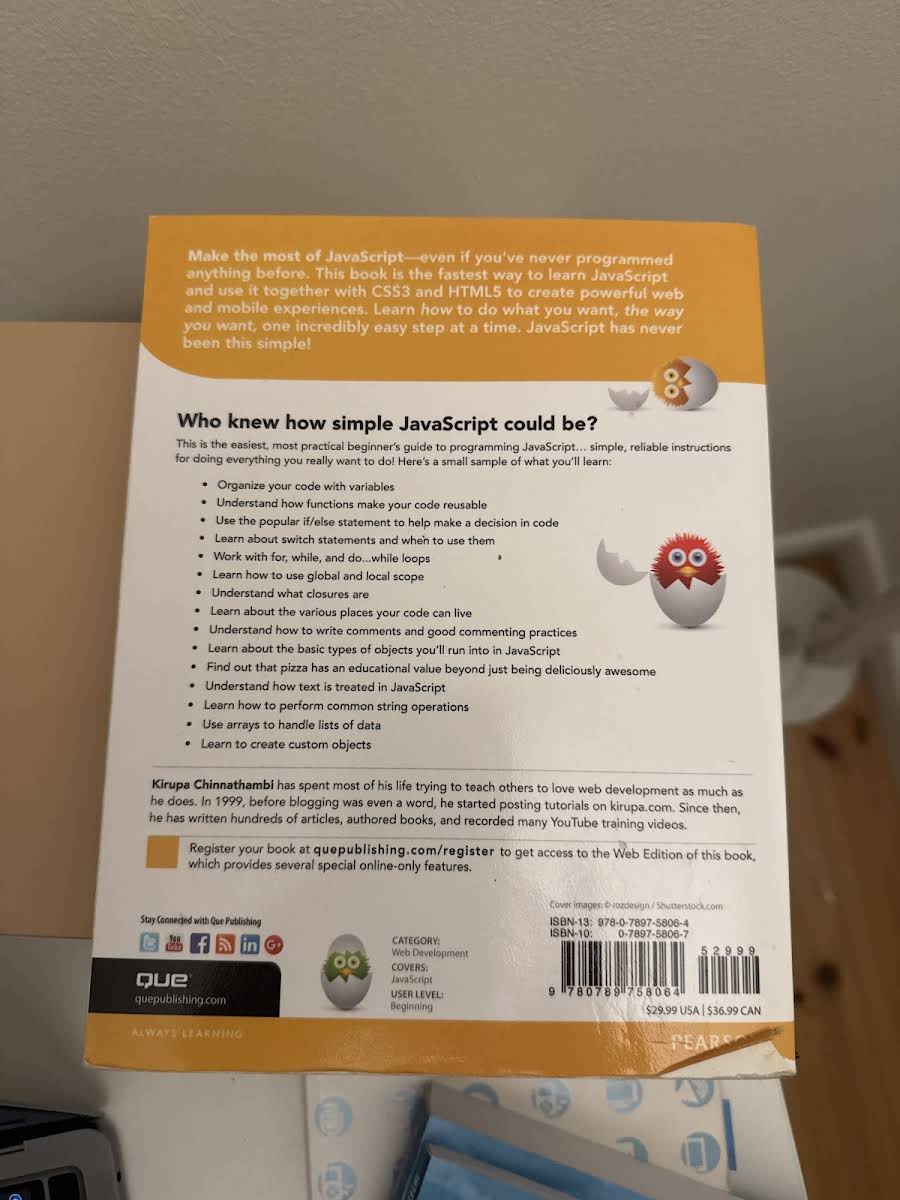 Slut med forvirring - JavaScript Absolute Beginner’s Guide af Kirupa Chinnathambi (2016) er din hurtigste vej til at mestre JavaScript og samtidig få styr på CSS3 og HTML5. Gennem klare, trin-for-trin-vejledninger lærer du at skabe interaktive web- og mobiloplevelser uden at drukne i tekniske detaljer. Med praktiske eksempler og øvelser går du fra variabler og funktioner til DOM-manipulation og responsive layouts i dit eget tempo. JavaScript har aldrig været så tilgængeligt - følg bogen, og se, hvordan dine idéer bliver levende på skærmen.