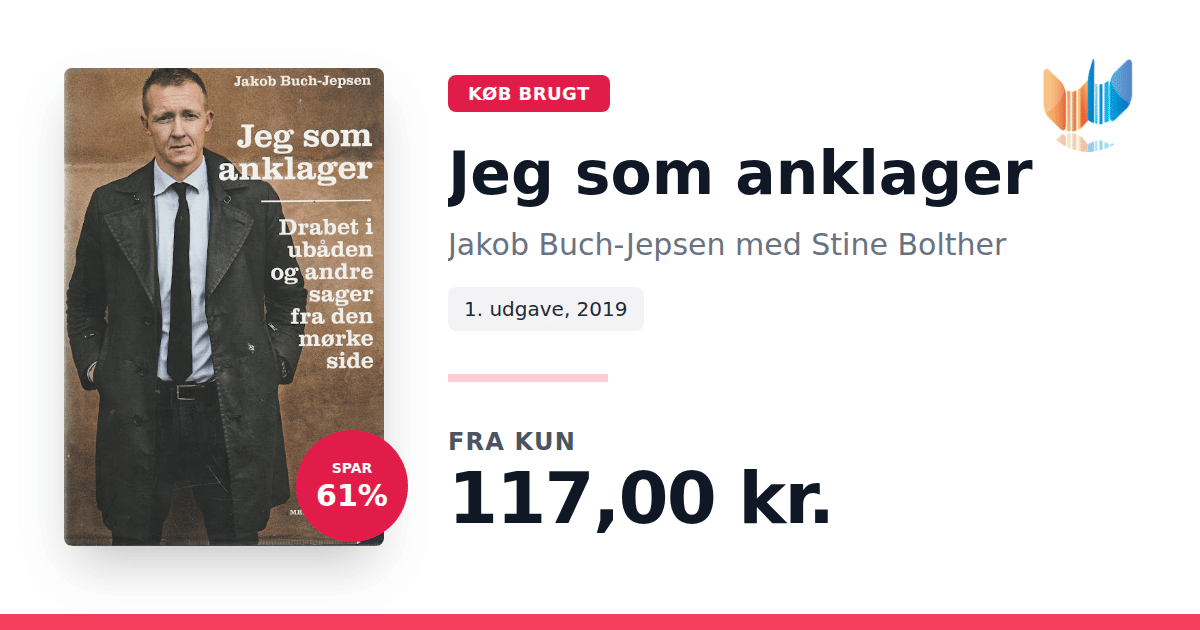 Lige nu kan du købe "Jeg som anklager" af Jakob Buch-Jepsen med Stine Bolther til kun 117,00 kr. Du sparer hele 61% af nyprisen! Bogen du ser her er brugt, og i perfekt stand. Vi har i øjeblikket kun et enkelt eksemplar til salg af "Jeg som anklager", så slå til mens du kan!