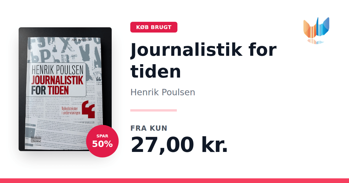 Lige nu kan du købe "Journalistik for tiden" af Henrik Poulsen til kun 27,00 kr. Du sparer hele 50% af nyprisen! Bogen du ser her er brugt, og i perfekt stand. Vi har i øjeblikket kun et enkelt eksemplar til salg af "Journalistik for tiden", så slå til mens du kan!