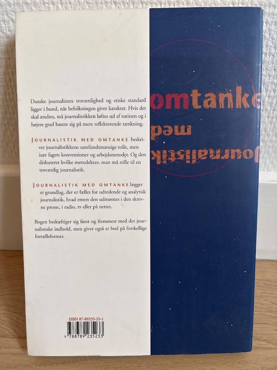 Peter Kramhøfts "Journalistik med omtanke" fra 2000 udforsker journalistikkens betydning for samfundet gennem et dybdegående blik på fagens konventioner og metoder. Med 238 sider i paperback giver bogen en grundig introduktion til den journalistiske praksis, hvor indhold og etik går hånd i hånd. Værket fokuserer primært på det journalistiske materiale, samtidig med at det præsenterer alternative fortælleformer, der kan styrke formidlingen. "Journalistik med omtanke" er et værdifuldt bidrag til forståelsen af, hvordan journalistik både afspejler og påvirker de samfundsmæssige realiteter.