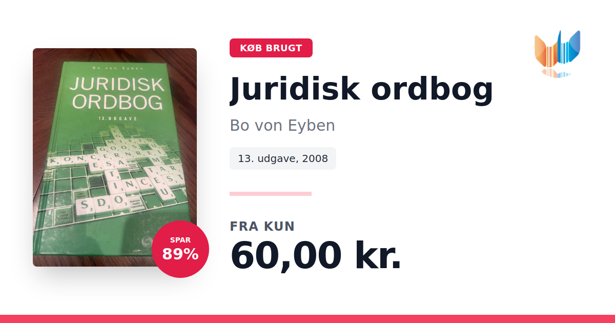 Juridisk ordbog giver dig præcise og letforståelige definitioner af de juridiske fagudtryk, du møder i love, domme og fagskrifter. Ordbogen er et kompakt opslagsværk, der sikrer, at du hurtigt forstår betydningen af komplekse termer. I denne 13. udgave fra 2008 er indholdet opdateret i forhold til de seneste års store reformer, herunder både kommunalreformen og domstolsreformen. Nye strukturer og begreber er indarbejdet, så ordbogen følger gældende ret. Opslagsartiklerne er renskrevet, bearbejdet og udvidet med adskillige nye termer. De grundlæggende begreber er gennemgået og væsentligt uddybet for at styrke din faglige forståelse. Der er indsat flere krydshenvisninger og præcise henvisninger til relevante lovbestemmelser. Det gør det enkelt at spore begrebernes placering i den aktuelle retstilstand og finde den fulde lovtekst. Med sine 415 sider i hardcover er Juridisk ordbog et uundværligt redskab for studerende, jurister, advokater og alle andre, der arbejder med jura. Bo von Eybens ordbog udgives af Karnov Group Denmark A/S.
