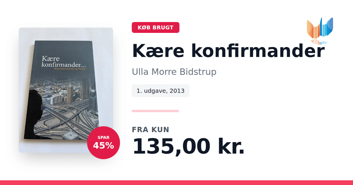 Lige nu kan du købe "Kære konfirmander" af Ulla Morre Bidstrup til kun 135,00 kr. Du sparer hele 45% af nyprisen! Bogen du ser her er brugt, og i perfekt stand. Vi har i øjeblikket kun et enkelt eksemplar til salg af "Kære konfirmander", så slå til mens du kan!