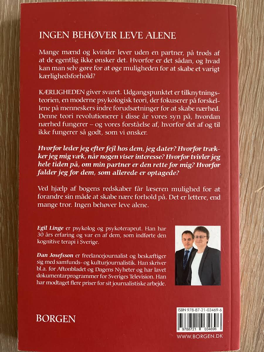 Kærligheden er en oplysende bog, der undersøger, hvordan vi kan bryde mønstrene for at skabe nære og varige kærlighedsforhold. For mange er det en gåde, hvorfor vi ofte ender alene, selvom ønsket om en partner er stærkt. Ved hjælp af tilknytningsteorien – en banebrydende moderne psykologisk tilgang – kaster bogen nyt lys over, hvordan vores indre forudsætninger påvirker vores evne til at knytte bånd. Bogen stiller relevante spørgsmål, som: Hvorfor har jeg en tendens til at lede efter fejl hos dem, jeg dater? Hvorfor trækker jeg mig, når nogen viser interesse? Og hvorfor vælger jeg undertiden partnere, der ikke er helt tilgængelige? Med praktiske redskaber og konkrete eksempler inspirerer forfatterne til at ændre de uhensigtsmæssige mønstre, så det at finde kærligheden bliver både tilgængeligt og overskueligt. Egil Linge, en erfaren psykolog og psykoterapeut med 30 års erfaring og en pioner inden for kognitiv terapi i Sverige, og freelancejournalisten Dan Josefsson, anerkendt for sit arbejde inden for samfunds- og kulturjournalistik, har sammen skabt en bog, der giver nye perspektiver på, hvordan vi opbygger og bevarer nære relationer.