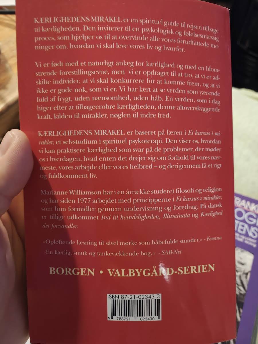 Lige nu kan du købe "Kærlighedens mirakel" af Marianne Williamson til kun 245,00 kr. Bogen du ser her er brugt, og i god stand. Vi har i øjeblikket kun et enkelt eksemplar til salg af "Kærlighedens Mirakel", så slå til mens du kan!