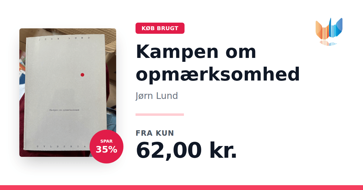 Lige nu kan du købe "Kampen om opmærksomhed" af Jørn Lund til kun 62,00 kr. Du sparer hele 35% af nyprisen! Bogen du ser her er brugt, og i god stand. Vi har i øjeblikket kun et enkelt eksemplar til salg af "Kampen om opmærksomhed", så slå til mens du kan!