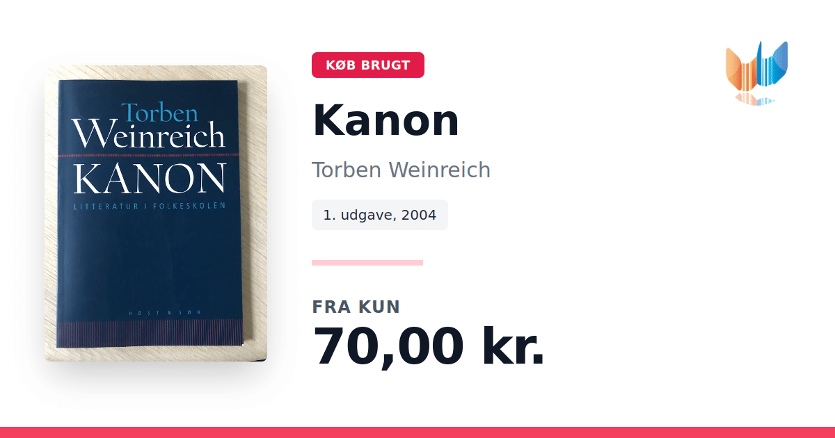 Lige nu kan du købe "Kanon" af Torben Weinreich til kun 70,00 kr. Bogen du ser her er brugt, og i god stand. Vi har i øjeblikket kun et enkelt eksemplar til salg af "Kanon", så slå til mens du kan!