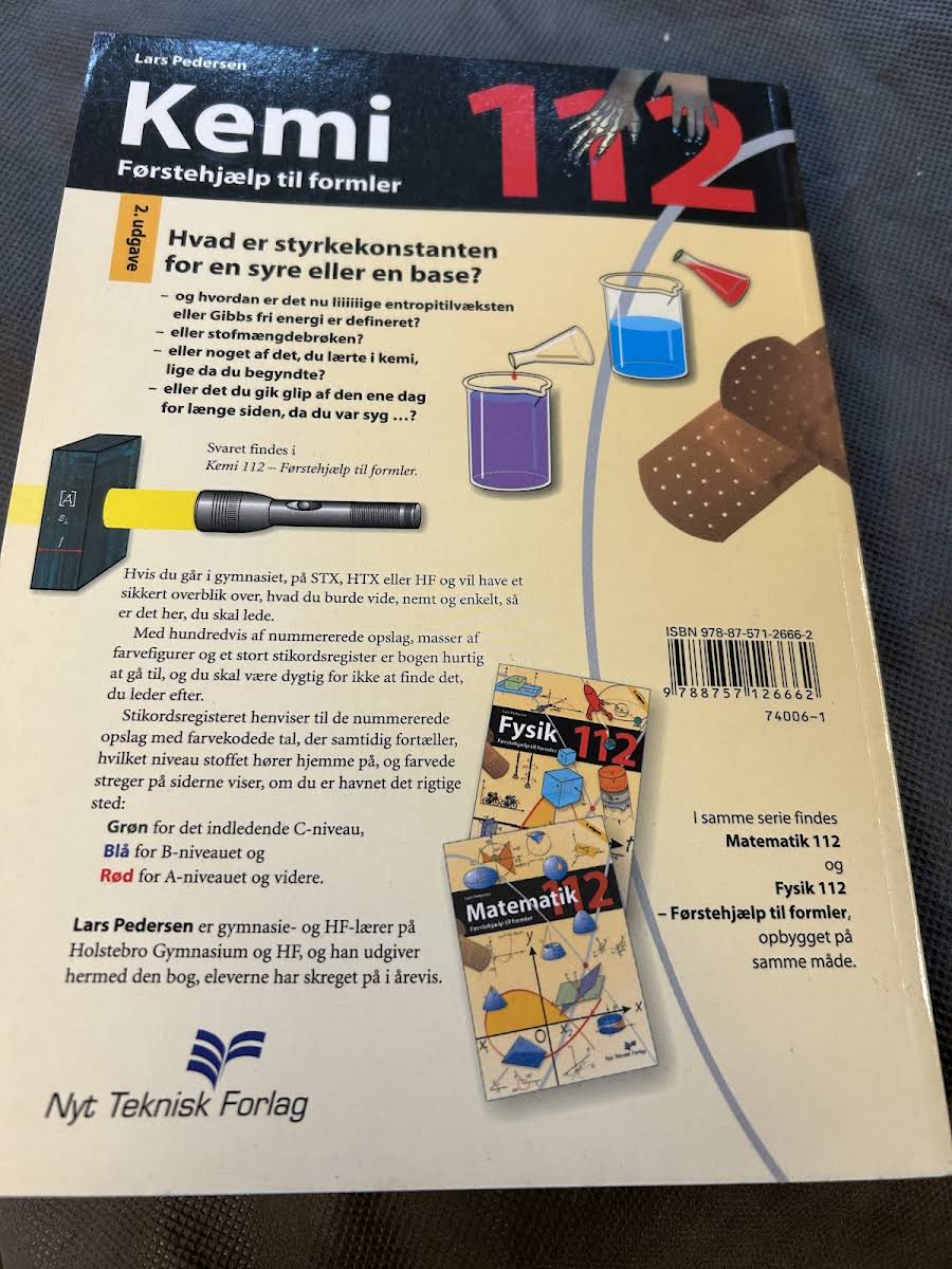 Kemi 112 af Lars Pedersen giver elever på gymnasiet, STX, HTX og HF en praktisk og overskuelig introduktion til kemiens centrale formler. Med fokus på alt fra Gibbs fri energi og entropitilvækst til stoffmængdebrøken, præsenterer denne bog de essensielle redskaber, du behøver for at forstå de fundamentale principper i kemien. Bogens layout er gennemarbejdet med nummererede opslag og farvekodede henvisninger, der hurtigt guider dig til det rette niveau – grøn for C-niveau, blå for B-niveau og rød for A-niveau. På 136 sider har Lars Pedersen, med mange års erfaring som gymnasielærer, samlet en formelsamling, der både assisterer ved repetition og skaber klarhed, når du skal have styr på de vigtigste formler.