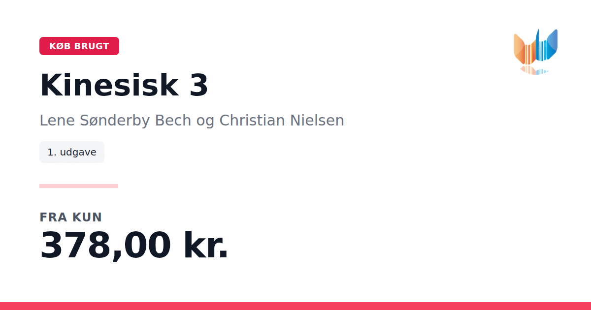Lige nu kan du købe "Kinesisk 3" af Lene Sønderby Bech og Christian Nielsen til kun 378,00 kr. Bogen du ser her er brugt, og i perfekt stand. Vi har i øjeblikket kun et enkelt eksemplar til salg af "Kinesisk 3", så slå til mens du kan!