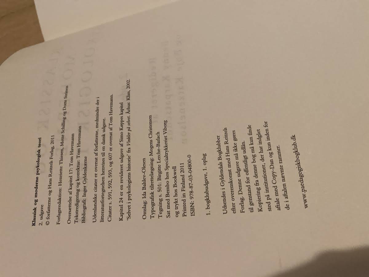 Klassisk og moderne psykologisk teori - 2. udgave, 2011