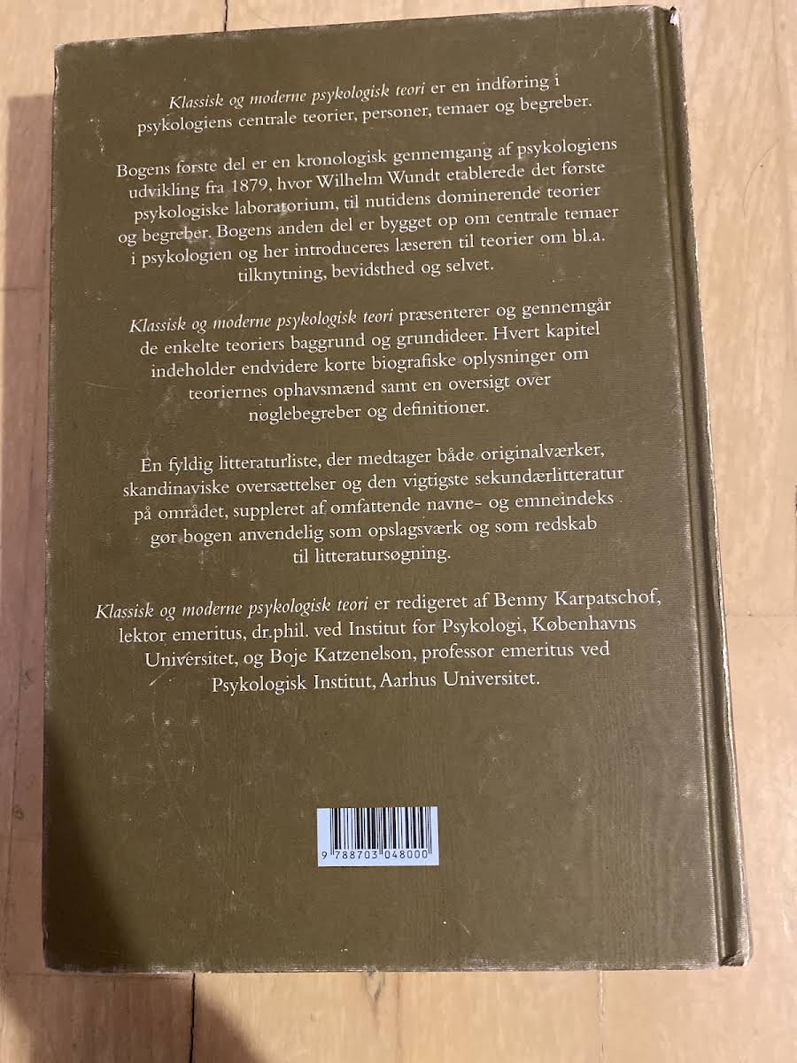 • Klassisk og moderne psykologisk teori, Benny Karpatschof, Boje Katzenelson, 9788703048000