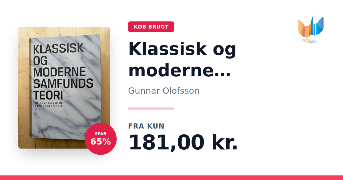 Med sin 5. udgave fremstår "Klassisk og moderne samfundsteori" som et uundværligt redskab for studerende og undervisere inden for samfundsvidenskab. Denne omfattende bog rummer 1000 sider, der systematisk præsenterer de teoretiske fundamenter og udviklinger fra klassiske modeller til de nyeste perspektiver i moderne samfundsteori. Bogen er resultatet af et frugtbart samarbejde blandt anerkendte danske og nordiske samfundsforskere, herunder Anders Ramsay, Dag Østerberg, Gorm Harste, Gunnar Olofsson, Heine Andersen, Jacob Torfing, Kaspar Villadsen, Kirsten Hastrup, Lars Bo Kaspersen, Margaretha Järvinen, Michael Hviid Jacobsen, Per Månson, Poul Poder, Roar Hagen, Thomas P. Boje og Thora Marg... Udgivet af Gyldendal i 2013, leverer denne opdaterede udgave en aktuel og nuanceret indføring i de centrale teoretiske strømninger, som fortsat former vores forståelse af samfundet.