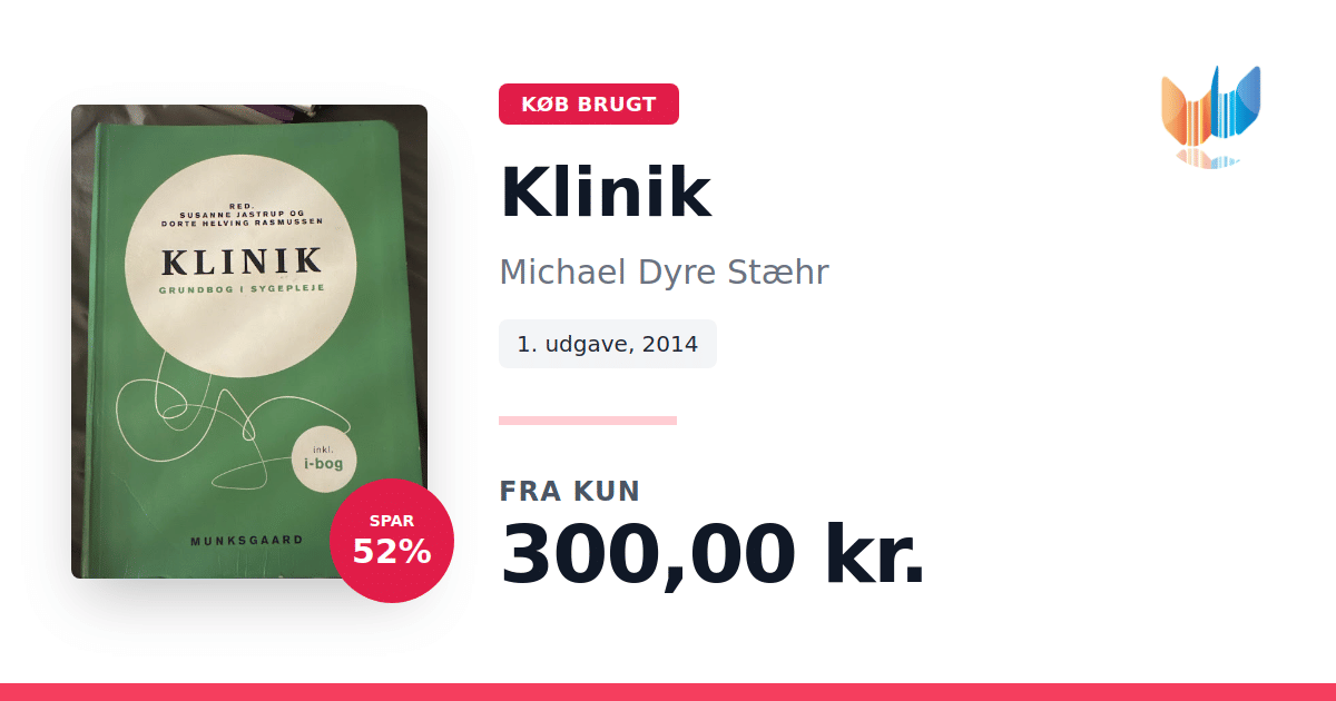 Lige nu kan du købe "Klinik" af Michael Dyre Stæhr til kun 300,00 kr. Du sparer hele 52% af nyprisen! Bogen du ser her er brugt, og i god stand. Vi har i øjeblikket 8 eksemplarer til salg af "Klinik", så husk at se de forskellige udgaver.