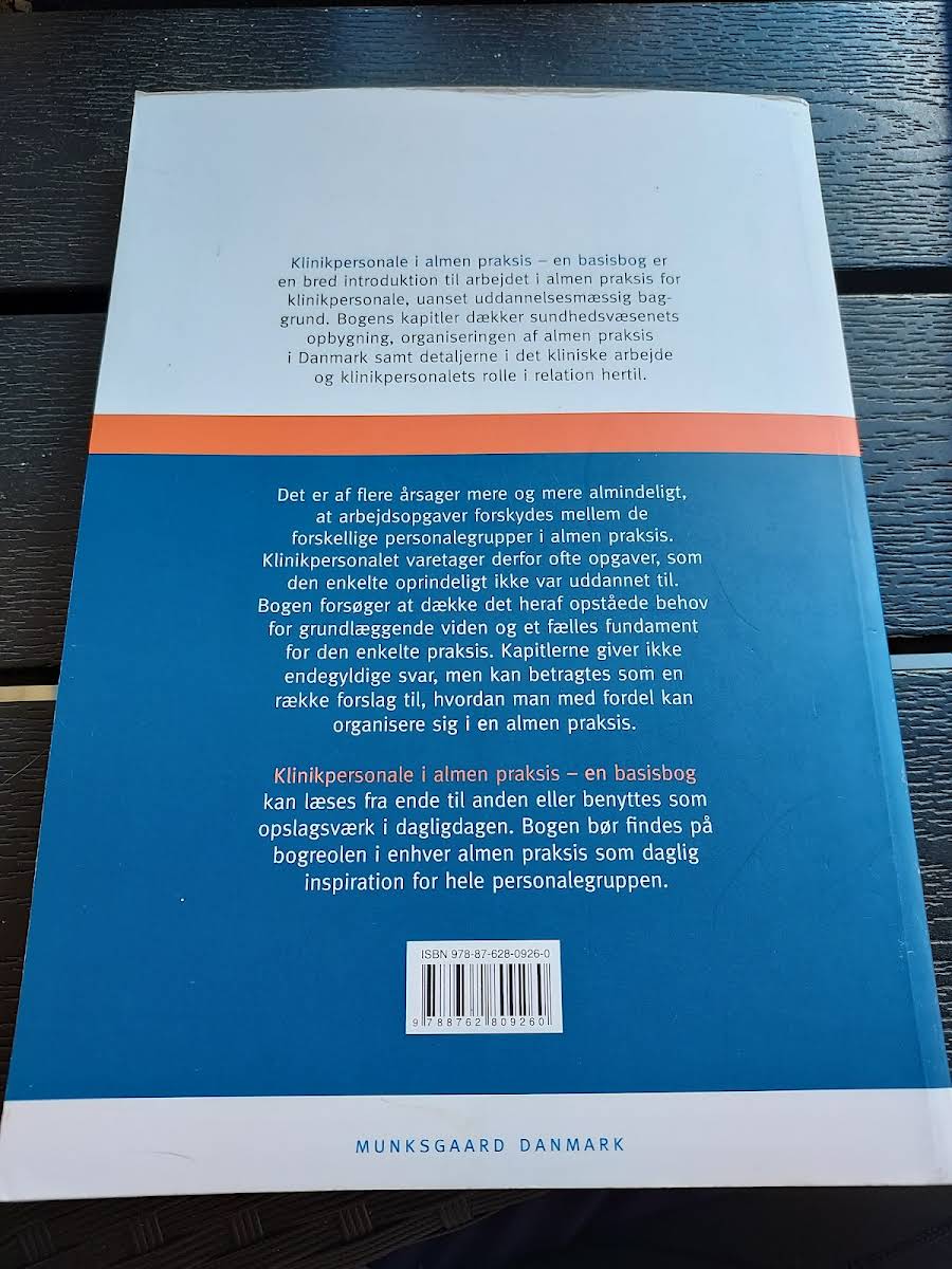 • Klinikpersonale i almen praksis - en basisbog, Benny Ehrenreich, Bettina Lundgren, Bo Christensen, Diana Mortensen, Ejvind Mouritsen, Else Madsen, erling kjærulff, Flemming Skovsgaard, Frede Olesen, Gregers Hansen-Nord, Grete Moth, Helge Madsen, Henrik Schroll, Jens Hilden, Jens Parker, Jytte Schmi..., 9788762809260