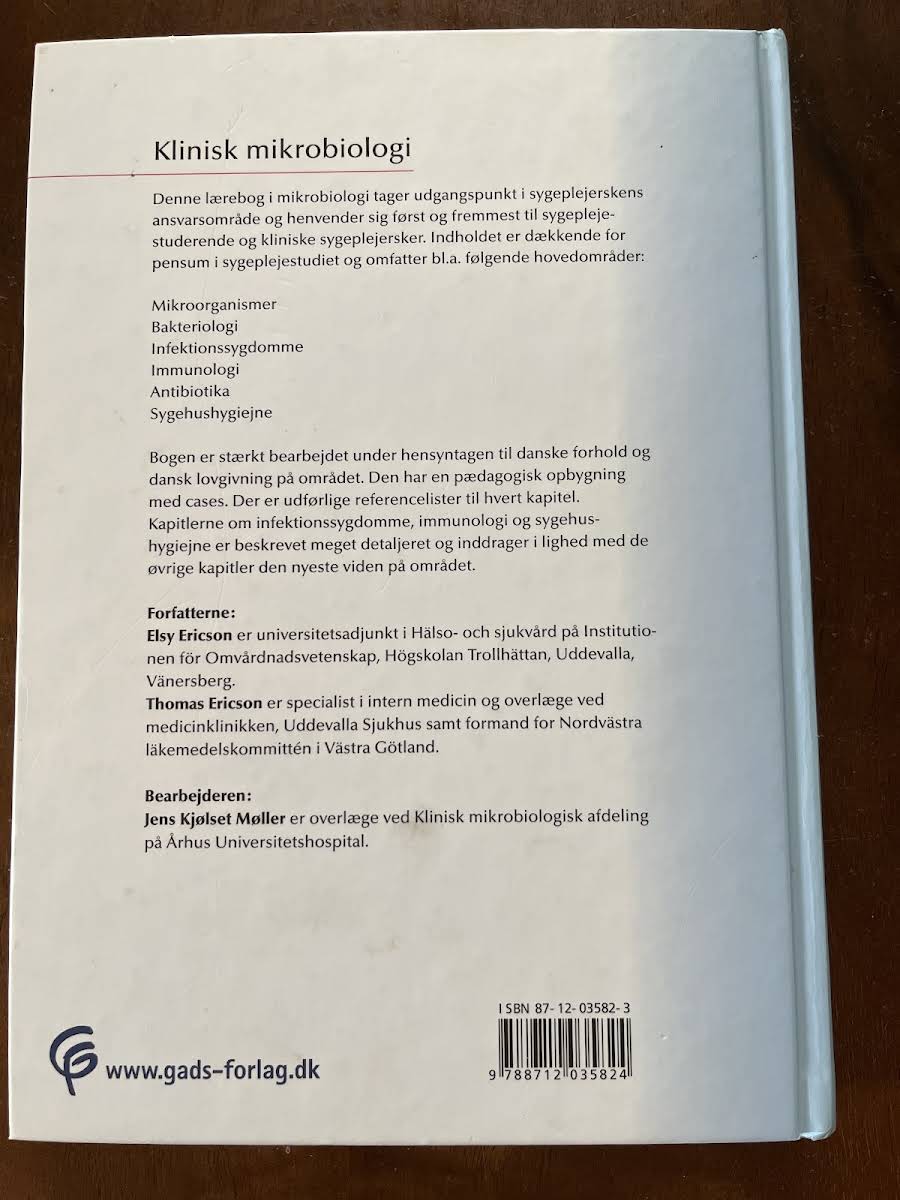 Klinisk mikrobiologi er en lærebog, der med sit kliniske indblik henvender sig til både studerende og praktiserende sygeplejersker. Bogen præsenterer et solidt grundlag inden for mikroorganismer, bakteriologi, infektionssygdomme, immunologi, antibiotika og sygehushygiejne – emner, der tilsammen udgør en central del af pensum i sygeplejestudiet. Bogen er nøje tilpasset danske forhold og lovgivning og anvender en pædagogisk struktur med cases, som understøtter både forståelsen og den praktiske anvendelse af stoffet. Hver sektion suppleres med udførlige referencelister, der sikrer en kontinuerlig opdatering med den nyeste viden inden for området. Elsy Ericson og Thomas Ericson bringer begge en bred klinisk erfaring og faglig tyngde til bogen. Med et klart fokus på kliniske problemstillinger tilbyder denne udgave et relevant og aktuelt redskab til dem, der arbejder med eller studerer mikrobiologi i en sundhedsfaglig kontekst.