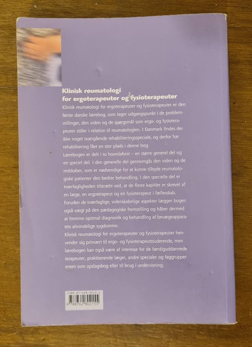 Klinisk reumatologi for ergoterapeuter og fysioterapeuter er en alsidig lærebog, der henvender sig til både studerende og udøvende fagpersoner. Bogen tilbyder et solidt fundament inden for reumatologi med særligt fokus på de tværfaglige aspekter, der er essentielle for optimal behandling af patienter med reumatologiske problemstillinger. Med en klar opbygning, der kombinerer generel teoretisk viden med specifikke behandlingsstrategier, giver forfatteren Mia Salinsk et indblik i, hvordan ergoterapi og fysioterapi sammen kan bidrage til en helhedsorienteret rehabilitering. Den pædagogiske fremstilling understøtter en systematisk tilgang til diagnostik og behandling, hvor den videnskabelige evidens går hånd i hånd med kliniske erfaringer. Bogen er udformet med henblik på at være et brugbart opslagsværk, som både kan anvendes i undervisningssammenhænge og som et redskab i den daglige kliniske praksis. Klinikere og studerende vil finde værdi i de praktiske redskaber og den tværfaglige betragtning, der understøtter en optimal behandling af bevægeapparatets mest almindelige sygdomme.