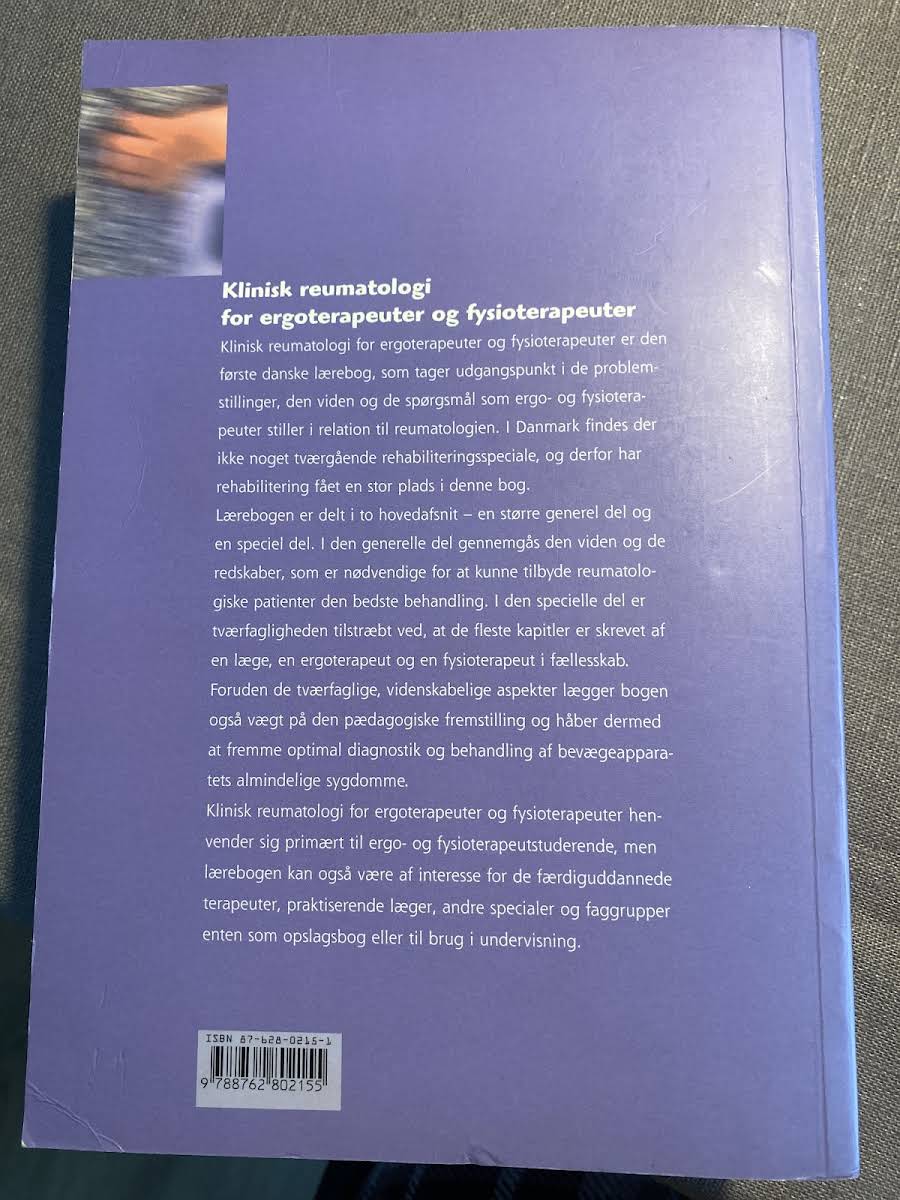 Klinisk reumatologi for ergoterapeuter og fysioterapeuter er en alsidig lærebog, der henvender sig til både studerende og udøvende fagpersoner. Bogen tilbyder et solidt fundament inden for reumatologi med særligt fokus på de tværfaglige aspekter, der er essentielle for optimal behandling af patienter med reumatologiske problemstillinger. Med en klar opbygning, der kombinerer generel teoretisk viden med specifikke behandlingsstrategier, giver forfatteren Mia Salinsk et indblik i, hvordan ergoterapi og fysioterapi sammen kan bidrage til en helhedsorienteret rehabilitering. Den pædagogiske fremstilling understøtter en systematisk tilgang til diagnostik og behandling, hvor den videnskabelige evidens går hånd i hånd med kliniske erfaringer. Bogen er udformet med henblik på at være et brugbart opslagsværk, som både kan anvendes i undervisningssammenhænge og som et redskab i den daglige kliniske praksis. Klinikere og studerende vil finde værdi i de praktiske redskaber og den tværfaglige betragtning, der understøtter en optimal behandling af bevægeapparatets mest almindelige sygdomme.