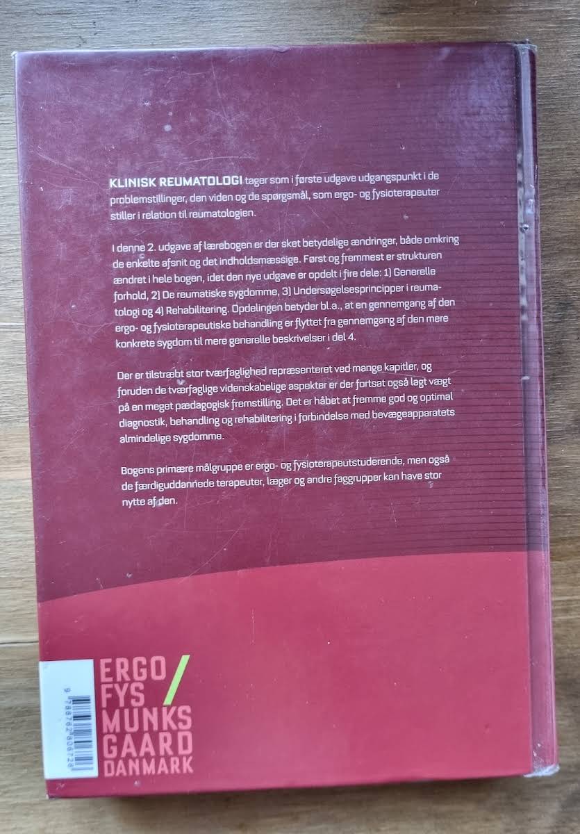 Klinisk reumatologi er en omfattende fagbog, der giver et grundlag for forståelsen af reumatologiens kliniske aspekter. Bogen fokuserer på de udfordringer, der opstår i forbindelse med led, blødt væv og bindevæv, og præsenterer et indgående overblik over både diagnosticering og rehabilitering af reumatiske sygdomme. Bogen er struktureret i fire dele, der hver især behandler centrale emner fra de generelle forhold til specifikke reumatiske lidelser, undersøgelsesprincipper og den efterfølgende rehabilitering. Med bidrag fra førende eksperter inden for området tilbyder dette værk en solid teoretisk og praktisk tilgang, der er særlig relevant for ergo- og fysioterapistuderende samt andre sundhedsprofessionelle. Første udgave fra 2011, udgivet af Gyldendal, illustrerer et helhedssyn på reumatologi, og dens omfattende indhold på 496 sider gør den til en uvurderlig ressource for alle, der arbejder med eller studerer reumatologi.