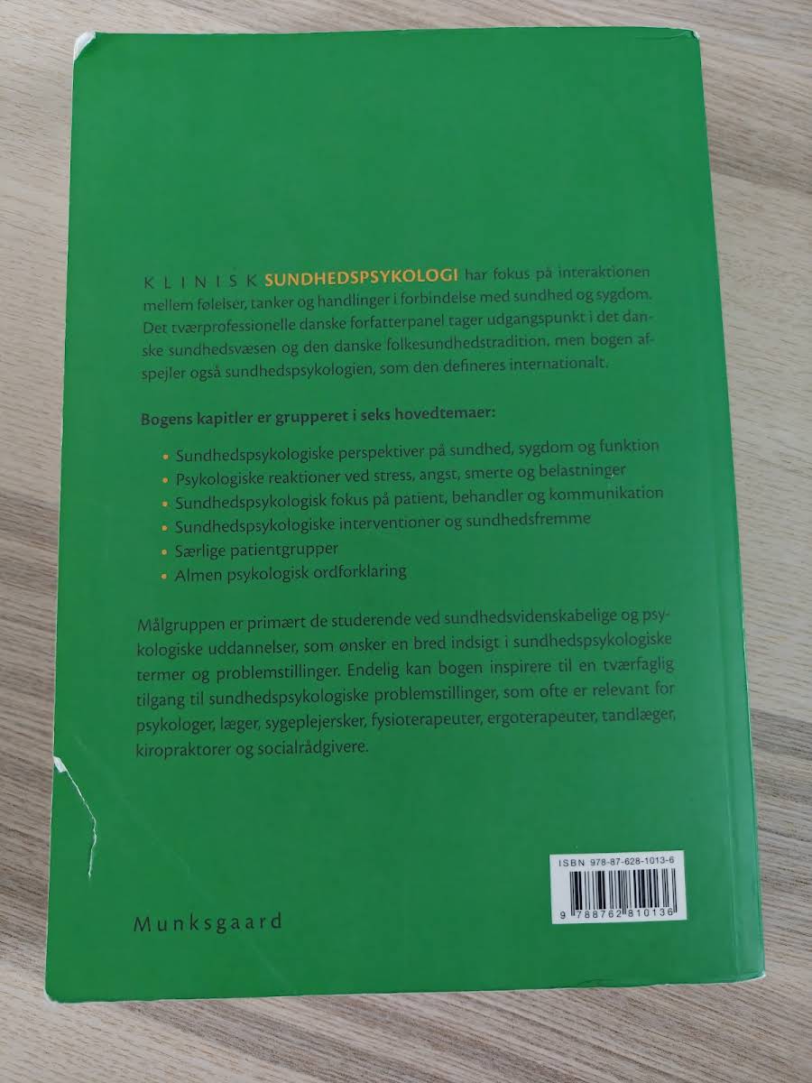 Klinisk sundhedspsykologi er en grundig tekstbog, der henvender sig til studerende inden for sundhedsvidenskab og psykologi, som ønsker en bred forståelse af sundhedspsykologisk terminologi og de centrale problemstillinger på området. Bogen er udarbejdet af et tværprofessionelt forfatterpanel med udgangspunkt i det danske sundhedsvæsen og den folkesundhedstradition, men rummer også en internationalt orienteret tilgang til sundhedspsykologi. Indholdet er struktureret i seks hovedtemaer: sundhedspsykologiske perspektiver på sundhed, sygdom og funktion, psykologiske reaktioner ved stress, angst, smerte og belastninger, sundhedspsykologisk fokus på patient, behandler og kommunikation samt sundhedspsykologiske interventioner og sundhedsfremme. Derudover omfatter bogen temaer omkring særlige patientgrupper og en almen psykologisk ordforklaring, hvilket giver en helhedsorienteret og tværfaglig tilgang til emnet.