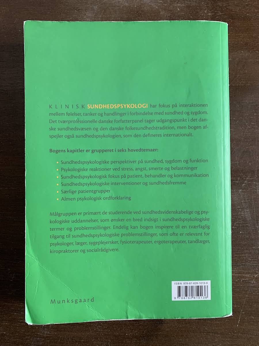 Klinisk sundhedspsykologi er en grundig tekstbog, der henvender sig til studerende inden for sundhedsvidenskab og psykologi, som ønsker en bred forståelse af sundhedspsykologisk terminologi og de centrale problemstillinger på området. Bogen er udarbejdet af et tværprofessionelt forfatterpanel med udgangspunkt i det danske sundhedsvæsen og den folkesundhedstradition, men rummer også en internationalt orienteret tilgang til sundhedspsykologi. Indholdet er struktureret i seks hovedtemaer: sundhedspsykologiske perspektiver på sundhed, sygdom og funktion, psykologiske reaktioner ved stress, angst, smerte og belastninger, sundhedspsykologisk fokus på patient, behandler og kommunikation samt sundhedspsykologiske interventioner og sundhedsfremme. Derudover omfatter bogen temaer omkring særlige patientgrupper og en almen psykologisk ordforklaring, hvilket giver en helhedsorienteret og tværfaglig tilgang til emnet.