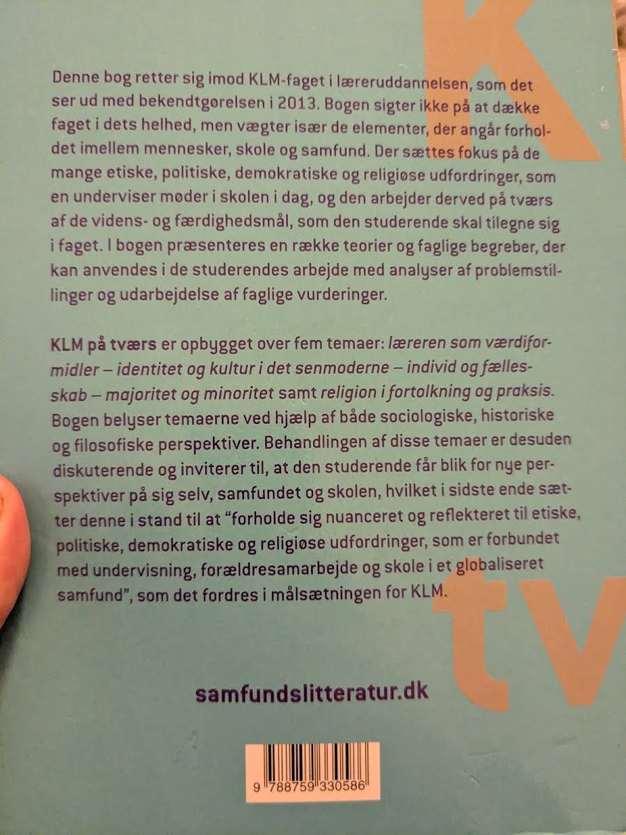"KLM på tværs" af Bjørg Bogisch henvender sig til studerende på læreruddannelsen, som skal undervise i KLM-faget. Bogen baserer sig på bekendtgørelsen fra 2013 og sætter fokus på samspillet mellem mennesker, skole og samfund. Den udforsker de etiske, politiske, demokratiske og religiøse udfordringer, der i dag er en integreret del af undervisningspraksis. Med udgangspunkt i en bred tværfaglig tilgang introducerer bogen en række teorier og begreber, der kan anvendes i analysen af komplekse faglige problemstillinger. "KLM på tværs" er struktureret omkring fem overordnede temaer, herunder lærerens rolle som værdiformidler, identitet og kultur, forholdet mellem individ og fællesskab, majoritet og minoritet samt religion i fortolkning og praksis. Gennem sociologiske, historiske og filosofiske perspektiver inviterer bogen de studerende til at reflektere over nye tilgangsvinkler til sig selv, skolen og samfundet. Bogen giver dermed et solidt grundlag for at forholde sig nuanceret og reflekteret til de mange udfordringer, der præger undervisning og dannelse i en moderne og globaliseret verden.