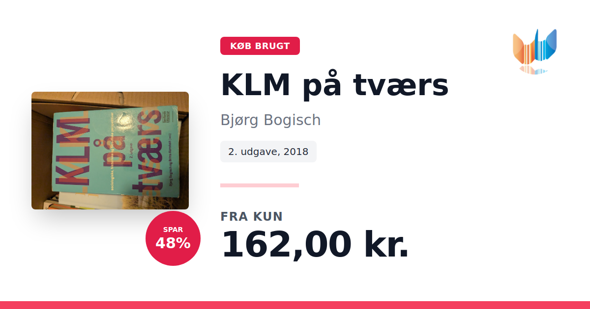 Lige nu kan du købe "KLM på tværs" af Bjørg Bogisch til kun 162,00 kr. Du sparer hele 48% af nyprisen! Bogen du ser her er brugt, og i god stand. Vi har i øjeblikket 5 eksemplarer til salg af "KLM på tværs", så husk at se de forskellige udgaver.