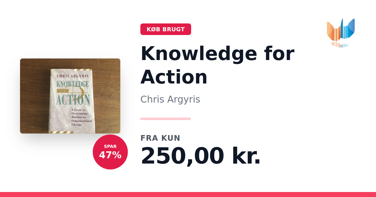 Lige nu kan du købe "Knowledge for Action" af Chris Argyris til kun 250,00 kr. Du sparer hele 47% af nyprisen! Bogen du ser her er brugt, og i perfekt stand. Vi har i øjeblikket kun et enkelt eksemplar til salg af "Knowledge for Action", så slå til mens du kan!