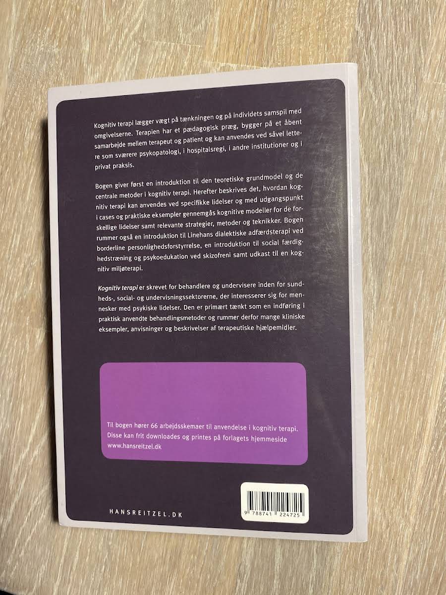 Kognitiv terapi fokuserer på, hvordan vores tanker og vores samspil med omverdenen former vores adfærd og liv. Bogen tager udgangspunkt i et åbent og pædagogisk samarbejde mellem terapeut og patient og præsenterer først den teoretiske model og de centrale metoder, der ligger til grund for den kognitive tilgang. Derudover beskrives, med udgangspunkt i cases og praktiske eksempler, hvordan metoderne kan anvendes ved specifikke lidelser – fra lettere til mere komplekse psykopatologiske tilstande. Bogen indeholder også introduktioner til emner som Linehans dialektiske adfærdsterapi ved borderline, social færdighedstræning samt psykoedukation ved skizofreni, og den rummer udkast til en kognitiv miljøterapi. Med fokus på praktisk anvendelige behandlingsmetoder er teksten rettet mod behandlere og undervisere inden for sundheds-, social- og undervisningssektorerne. Som en ekstra ressource medfølger 66 arbejdsskemaer, der er designet til direkte anvendelse i kognitiv terapi og kan downloades og printes fra forlagets hjemmeside.