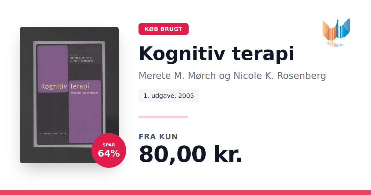 Lige nu kan du købe "Kognitiv terapi" af Merete M. Mørch og Nicole K. Rosenberg til kun 80,00 kr. Du sparer hele 64% af nyprisen! Bogen du ser her er brugt, og i perfekt stand. Vi har i øjeblikket 5 eksemplarer til salg af "Kognitiv terapi", så husk at se de forskellige udgaver.