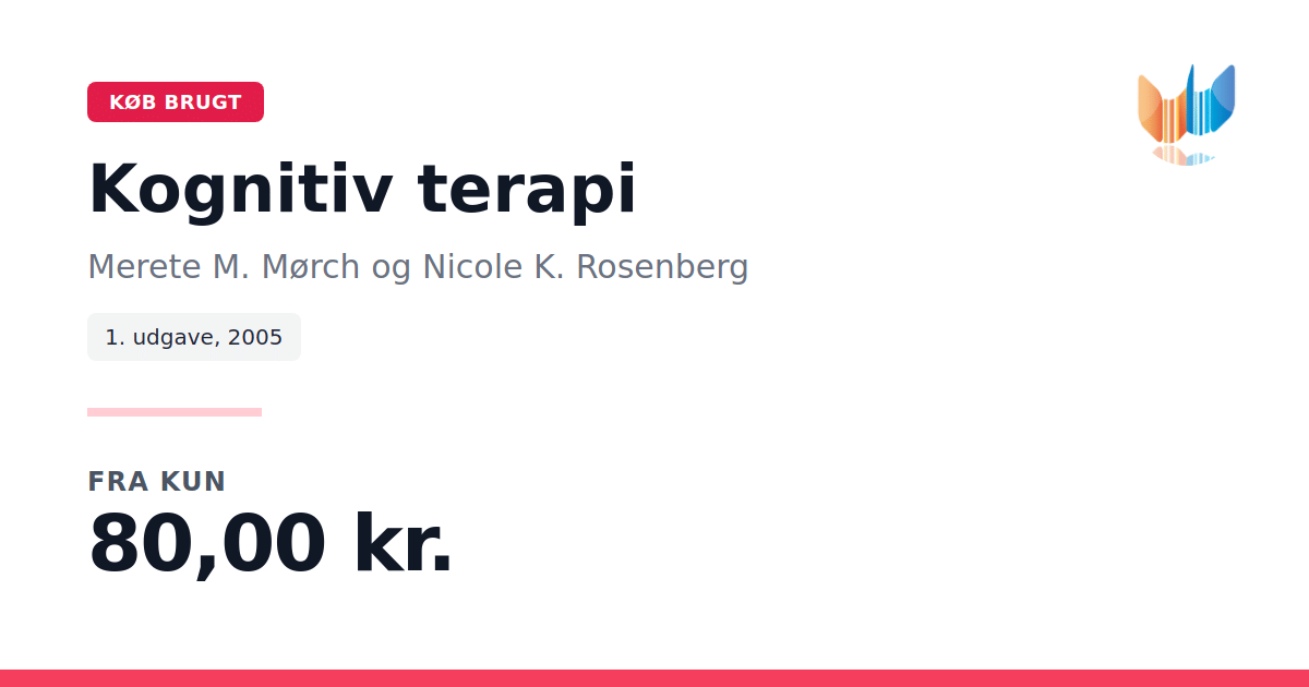 Lige nu kan du købe "Kognitiv terapi" af Merete M. Mørch og Nicole K. Rosenberg til kun 80,00 kr. Du sparer hele 64% af nyprisen! Bogen du ser her er brugt, og i god stand. Vi har i øjeblikket 4 eksemplarer til salg af "Kognitiv terapi", så husk at se de forskellige udgaver.