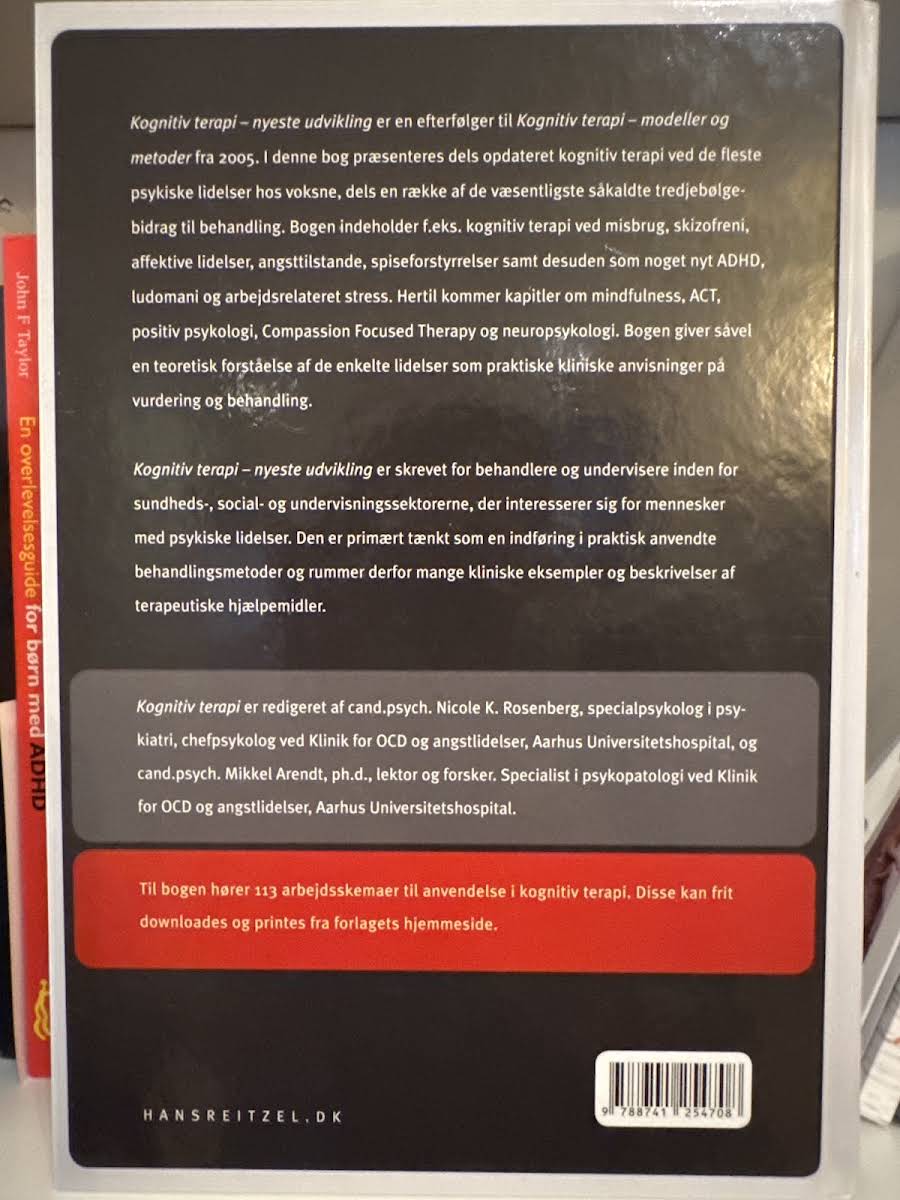 I "Kognitiv terapi" får du en opdateret og nuanceret præsentation af kognitiv terapi som behandlingsmetode for en bred vifte af psykiske lidelser hos voksne. Bogen kombinerer den klassiske tilgang med de nyeste tredjebølge-tilgange, og den dykker ned i behandlingen af lidelser som misbrug, skizofreni, angsttilstande, ADHD, ludomani, spiseforstyrrelser og mange flere. Med en solid teoretisk fundering udstyres læseren med praktiske kliniske anvisninger, der understøtter en præcis vurdering og behandling af de enkelte lidelser. Hvert kapitel indeholder desuden skemaer, som kan anvendes direkte i det kliniske arbejde, og de bidrager til at skabe en klar og anvendelig ramme for praksis. Bogen, udgivet af Hans Reitzels Forlag i 2012, bygger videre på tidligere modeller og metoder og præsenterer et alsidigt redskab til både studerende og erfarne klinikere. Med bidrag fra flere anerkendte eksperter på området sikres en dybdegående indsigt i de teoretiske og praktiske aspekter af kognitiv terapi.