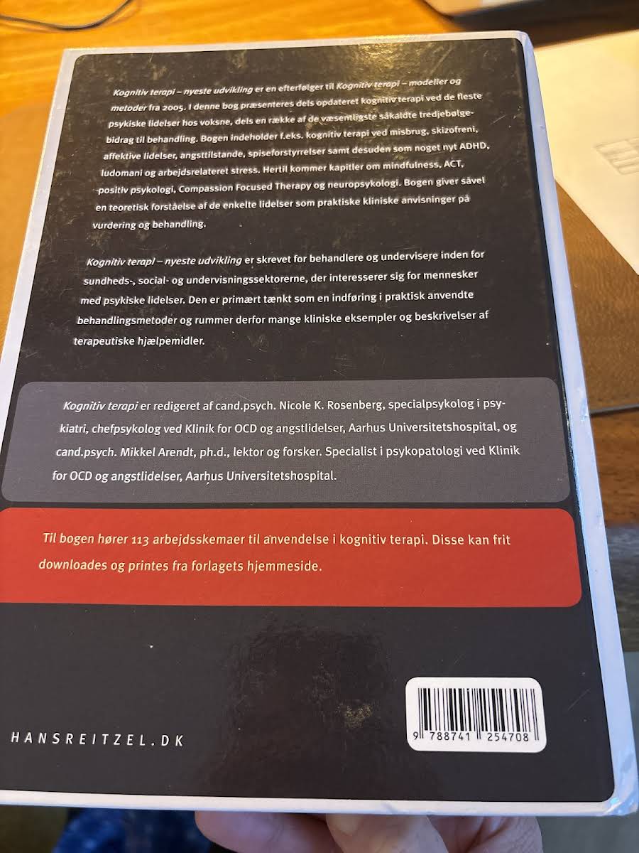 I "Kognitiv terapi" får du en opdateret og nuanceret præsentation af kognitiv terapi som behandlingsmetode for en bred vifte af psykiske lidelser hos voksne. Bogen kombinerer den klassiske tilgang med de nyeste tredjebølge-tilgange, og den dykker ned i behandlingen af lidelser som misbrug, skizofreni, angsttilstande, ADHD, ludomani, spiseforstyrrelser og mange flere. Med en solid teoretisk fundering udstyres læseren med praktiske kliniske anvisninger, der understøtter en præcis vurdering og behandling af de enkelte lidelser. Hvert kapitel indeholder desuden skemaer, som kan anvendes direkte i det kliniske arbejde, og de bidrager til at skabe en klar og anvendelig ramme for praksis. Bogen, udgivet af Hans Reitzels Forlag i 2012, bygger videre på tidligere modeller og metoder og præsenterer et alsidigt redskab til både studerende og erfarne klinikere. Med bidrag fra flere anerkendte eksperter på området sikres en dybdegående indsigt i de teoretiske og praktiske aspekter af kognitiv terapi.