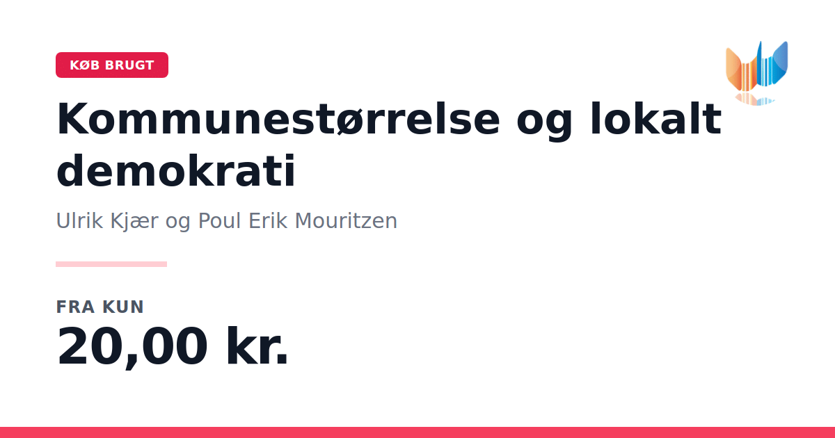 I en tid, hvor den offentlige debat skærpes omkring kommunesammenslutninger og kommunestørrelsens betydning, præsenterer bogen Kommunestørrelse og lokalt demokrati et grundigt og aktuelt studie af, hvordan kommunestørrelsen påvirker den lokale demokratiske udvikling. Forfatterne Ulrik Kjær og Flemming Mouritsen stiller skarpt på, hvordan borgernes interesse for kommunalpolitik, tillid til det politiske system, tilfredshed med den kommunale opgaveløsning og følelsen af tilknytning til deres kommune kan variere med kommunens størrelse. Bogen bygger på et omfattende forskningsprojekt, der undersøger de teoretiske og praktiske konsekvenser af kommunestørrelsens betydning for det lokale demokrati. Ved at belyse både fordele og ulemper ved de små versus de store kommuner, tilbyder værket værdifulde perspektiver til den videre debat om, hvilken kommunal størrelse der bedst sikrer et dynamisk og robust lokalt demokrati.