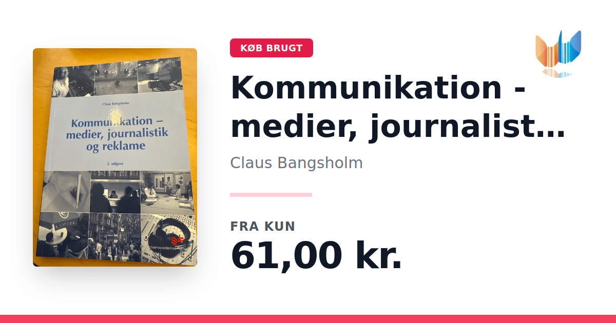 Lige nu kan du købe "Kommunikation - medier, journalistik og reklame" af Claus Bangsholm til kun 61,00 kr. Bogen du ser her er brugt, og i perfekt stand. Vi har i øjeblikket kun et enkelt eksemplar til salg af "Kommunikation - medier, journalistik og reklame", så slå til mens du kan!