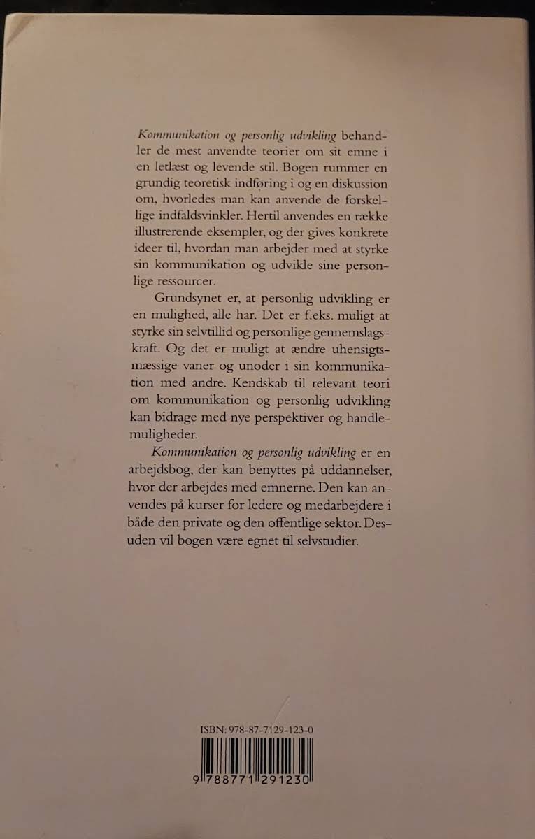 "Kommunikation og personlig udvikling" af Anne Latour og Jørgen Filtenborg er en alsidig grundbog, der dykker ned i kommunikationens mange facetter og dens indflydelse på personlig udvikling. Bogen introducerer læseren til syv centrale teoriformer, der belyser alt fra kropssprog og stemmebrug til ubevidst kommunikation og aktiv lytning. I værket præsenteres teorier som transaktionsanalyse, assertionstræning, NLP og teorien om NUZO for at sætte fokus på, hvordan vi kan forstå og løse kommunikationsudfordringer i både arbejds- og uddannelsessammenhæng. Med fokus på praktisk anvendelse, henvender bogen sig til alle, der ønsker at forbedre deres kommunikative færdigheder og dermed styrke deres personlige udvikling.