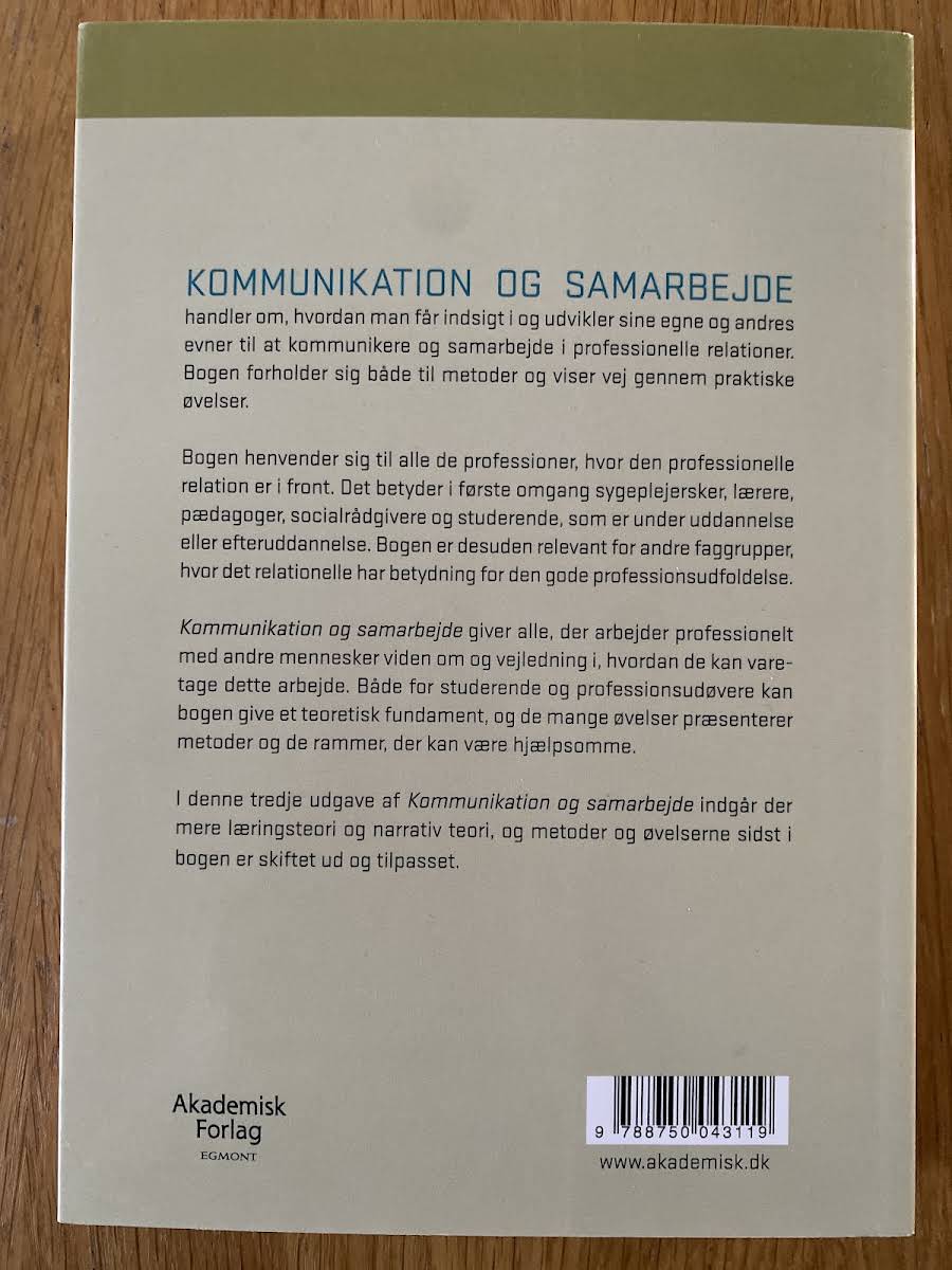 "Kommunikation og samarbejde" er en essentiel lærebog, der skaber indsigt i, hvordan man udvikler sine evner til både at kommunikere og samarbejde i professionelle relationer. Bogen er udformet af Vibeke Petersen, Mads Hermansen og Ole Løw og kombinerer et solidt teoretisk fundament med praktiske øvelser, som understøtter den daglige professionelle udøvelse i et bredt spektrum af fag. Med sin klare struktur og lettilgængelige tilgang præsenterer bogen relevante metoder og øvelser, der styrker dialogen mellem kolleger og med brugere af de professionelle ydelser. "Kommunikation og samarbejde" henvender sig til alle, der arbejder med mennesker – herunder pædagoger, lærere, sygeplejersker, læger, tandlæger og socialrådgivere – og tilbyder en række redskaber, der binder teori og praksis sammen på en inspirerende og moderne måde.
