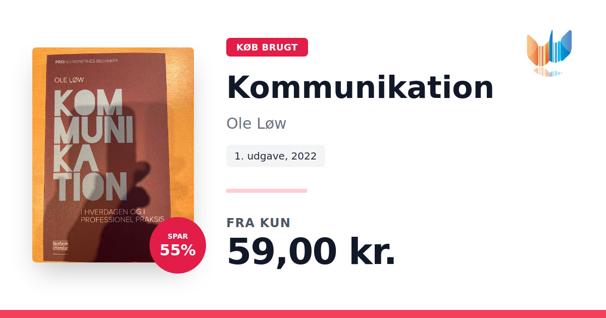 Lige nu kan du købe "Kommunikation" af Ole Løw til kun 59,00 kr. Du sparer hele 55% af nyprisen! Bogen du ser her er brugt, og i perfekt stand. Vi har i øjeblikket kun et enkelt eksemplar til salg af "Kommunikation", så slå til mens du kan!