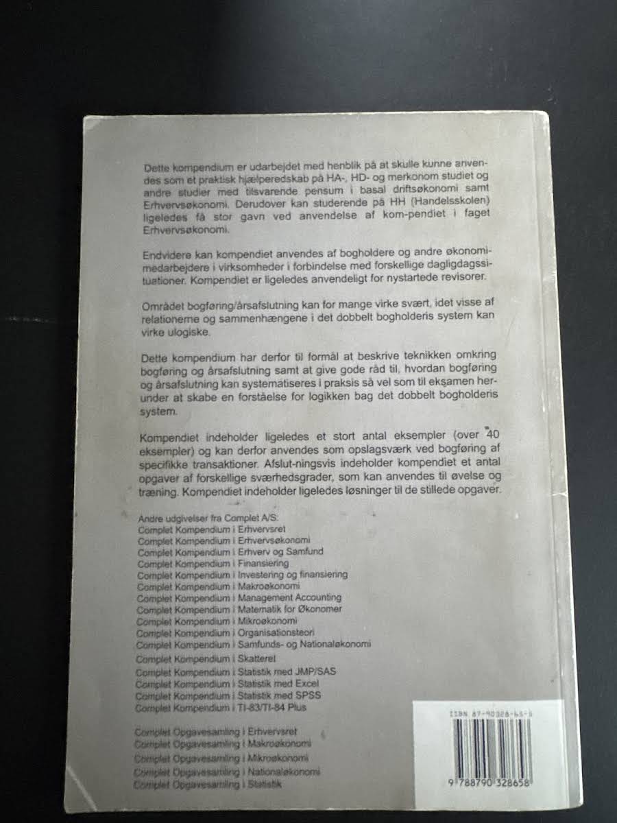 Kompendium i Bogføring og Årsafslutning er udarbejdet som et praktisk redskab for studerende på HA-, HD- og merkonomuddannelserne samt andre uddannelser med pensum i basal driftsøkonomi og erhvervsøkonomi. Også elever på HH vil kunne drage stor nytte af kompendiet, særligt i faget Erhvervsøkonomi. Værket er ikke alene til gavn for de studerende, men fungerer også som et værdifuldt opslagsværk for bogholdere og andre økonomimedarbejdere, der i deres daglige arbejde skal navigere i det dobbelte bogholderis system. Endvidere henvendes kompendiet til nystartede revisorer, som kan få et solidt fundament i teknikken bag bogføring og årsafslutning. Målet med dette kompendium er at give en klar og struktureret gennemgang af de metoder, der anvendes ved bogføring og afslutning af regnskabsår, samt at formidle gode råd til, hvordan disse processer kan systematiseres både i praksis og til eksamenssituationer. Der lægges stor vægt på at gøre det til en hjælp til at forstå logikken bag det dobbelte bogholderisystem. Kompendiet indeholder over 40 illustrative eksempler, som kan anvendes som opslagsværk ved bogføring af konkrete transaktioner. Desuden findes der et udvalg af opgaver med varierende sværhedsgrader, som understøttes af medfølgende løsningsforslag for at fremme træning og fordybelse i faget.