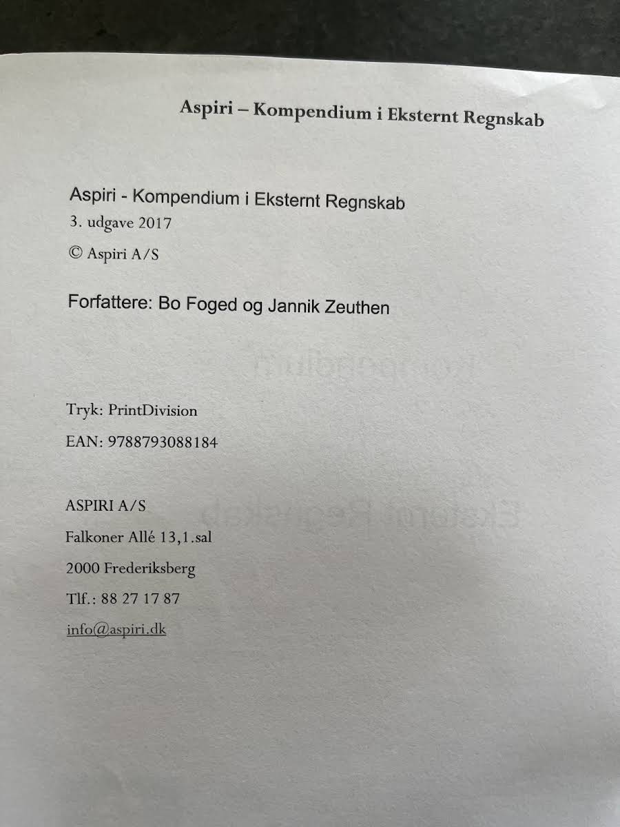 Kompendium i Eksternt Regnskab – Pensum på dansk - 2018