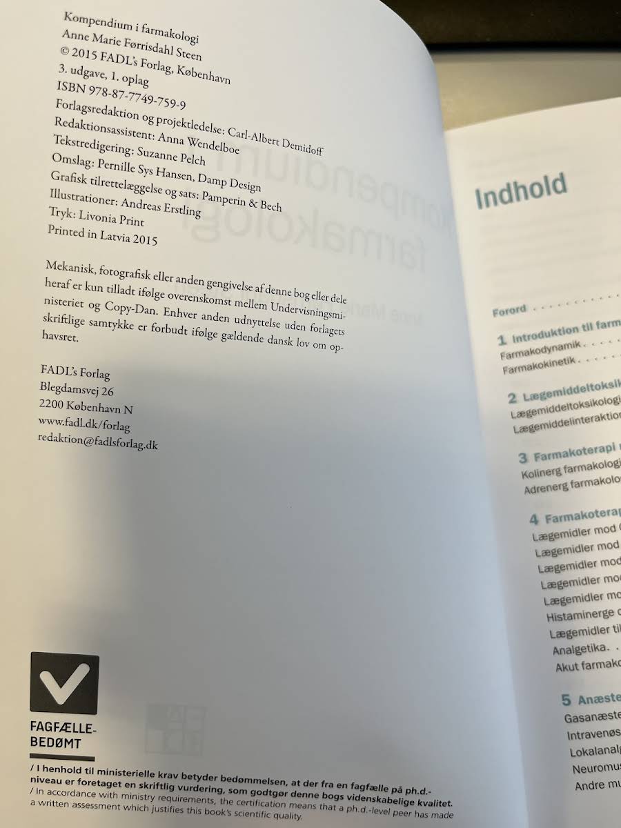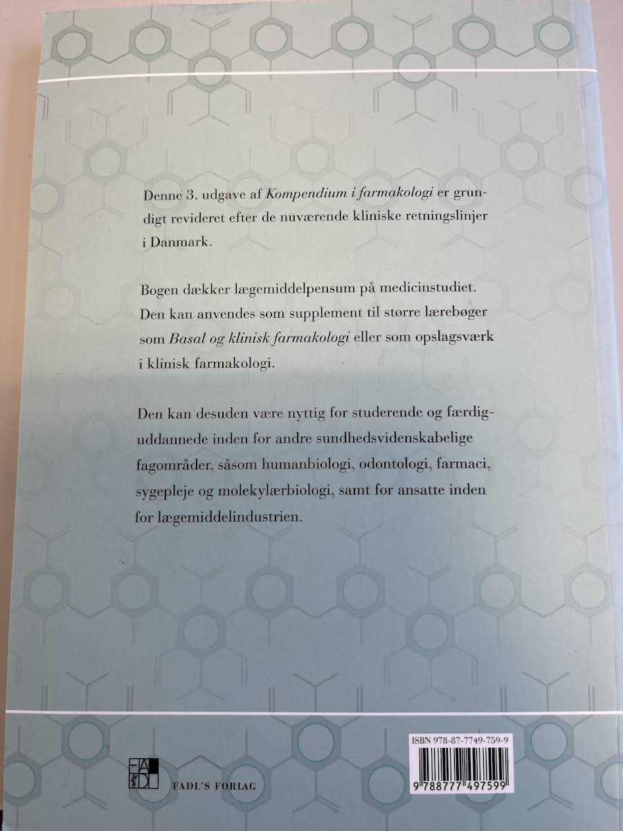 Kompendium i farmakologi er et essentielt redskab for alle, der studerer farmakologi og andre sundhedsvidenskabelige fag. Denne tredje udgave, udgivet i 2015 af Anne Marie Førrisdahl Steen, er revideret i overensstemmelse med de gældende kliniske retningslinjer i Danmark og dækker hele pensum inden for faget. Bogen præsenterer en kort indføring i teorien om farmakodynamik og -kinetik og forklarer de grundlæggende begreber, som er nødvendige for at forstå de videre emner i faget. Efterfølgende introduceres de væsentligste aspekter af lægemiddeltoksikologi og lægemiddelinteraktioner, hvilket gør kompendiet velegnet både som studiebog og opslagsværk i det kliniske miljø. Med overskuelig opbygning og klart formulerede emner henvender bogen sig ikke alene til farmakologi-studerende, men også til alle der ønsker et solidt fundament inden for farmakologi. Kompendiet er udgivet på paperback med 218 sider, hvilket sikrer en god balance mellem teoretisk indsigt og praktisk anvendelighed.