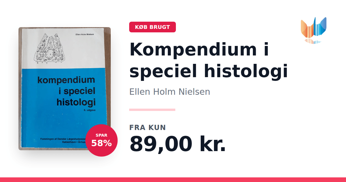 Lige nu kan du købe "Kompendium i speciel histologi" af Ellen Holm Nielsen til kun 89,00 kr. Du sparer hele 58% af nyprisen! Bogen du ser her er brugt, og i god stand. Vi har i øjeblikket kun et enkelt eksemplar til salg af "Kompendium i speciel histologi", så slå til mens du kan!