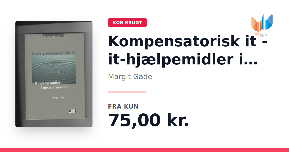 Lige nu kan du købe "Kompensatorisk it - it-hjælpemidler i undervisningen" af Margit Gade til kun 75,00 kr. Bogen du ser her er brugt, og i perfekt stand. Vi har i øjeblikket kun et enkelt eksemplar til salg af "Kompensatorisk it - it-hjælpemidler i undervisningen", så slå til mens du kan!