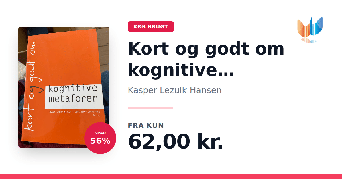Lige nu kan du købe "Kort og godt om kognitive metaforer" af Kasper Lezuik Hansen til kun 62,00 kr. Du sparer hele 56% af nyprisen! Bogen du ser her er brugt, og i god stand. Vi har i øjeblikket kun et enkelt eksemplar til salg af "Kort og godt om kognitive metaforer", så slå til mens du kan!
