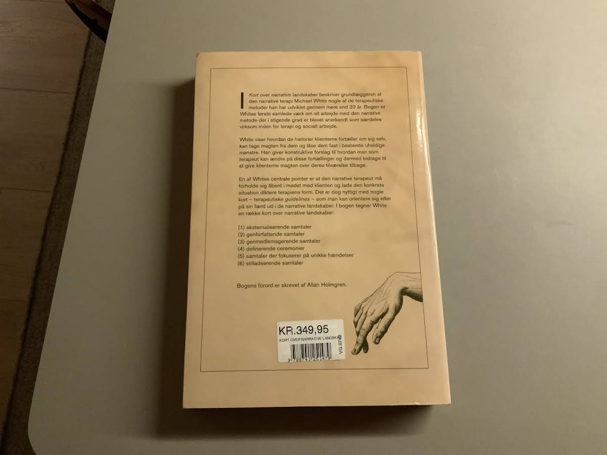 Kort over narrative landskaber er et centralt værk af Michael White, manden bag den narrative terapimetode. I bogen præsenteres et udvalg af terapeutiske teknikker, som understreger vigtigheden af at møde klienten med åbenhed og lade den konkrete situation bestemme terapiformen. Med udgangspunkt i mange års erfaring demonstrerer White, hvordan den måde, vi fortæller vores egne historier på, kan fastlåse os i mønstre, der hæmmer forandring. Gennem en række illustrative eksempler opfordrer han terapeuten til at arbejde kreativt med samtalen – fra eksternaliserende dialoger til genforfattende samtaler – med henblik på at åbne op for nye fortællinger og muligheder. Bogen udgør således en inspirerende og dybtgående guide til narrativ terapi, der både er praktisk funderet og etisk forankret. Kort over narrative landskaber byder på et unikt overblik over de metoder, der har hjulpet utallige mennesker til at ændre deres livshistorie.