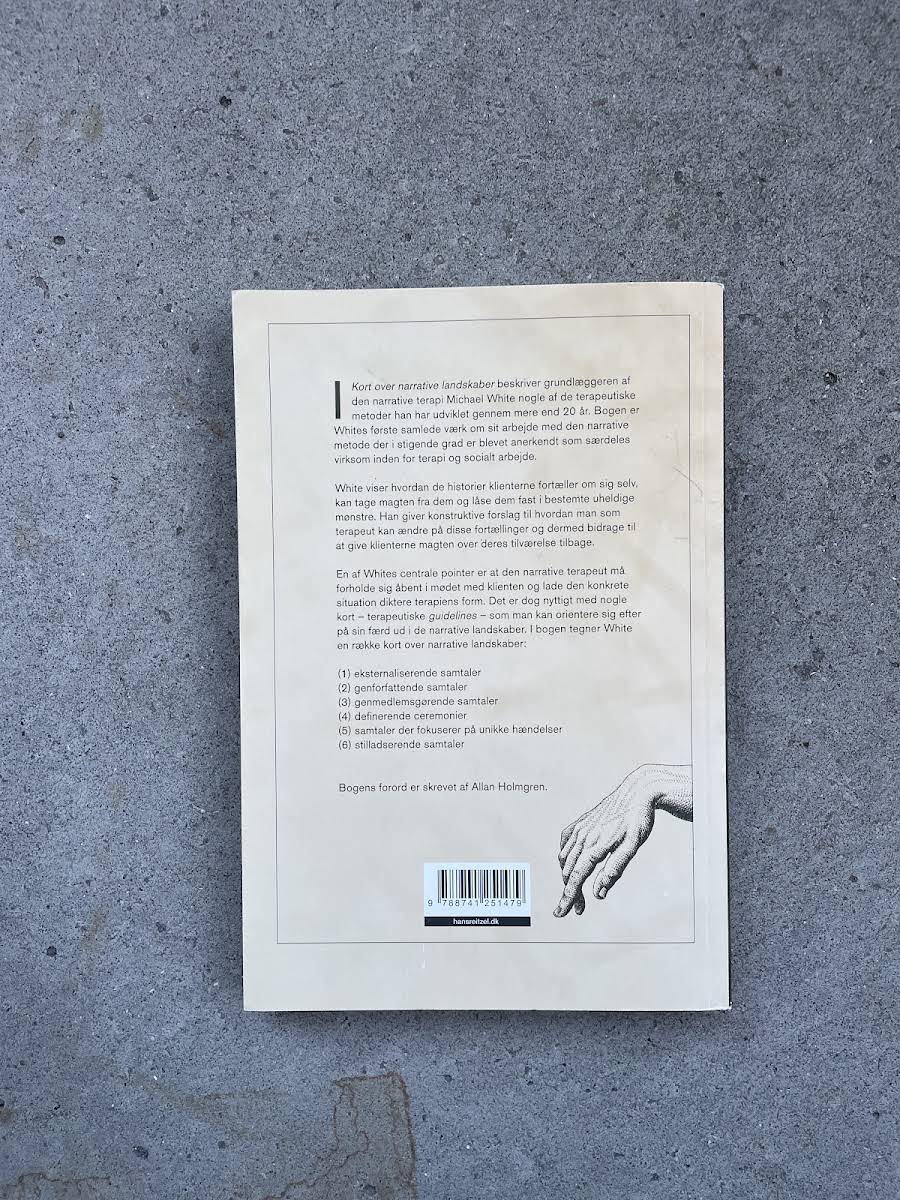 Kort over narrative landskaber er et centralt værk af Michael White, manden bag den narrative terapimetode. I bogen præsenteres et udvalg af terapeutiske teknikker, som understreger vigtigheden af at møde klienten med åbenhed og lade den konkrete situation bestemme terapiformen. Med udgangspunkt i mange års erfaring demonstrerer White, hvordan den måde, vi fortæller vores egne historier på, kan fastlåse os i mønstre, der hæmmer forandring. Gennem en række illustrative eksempler opfordrer han terapeuten til at arbejde kreativt med samtalen – fra eksternaliserende dialoger til genforfattende samtaler – med henblik på at åbne op for nye fortællinger og muligheder. Bogen udgør således en inspirerende og dybtgående guide til narrativ terapi, der både er praktisk funderet og etisk forankret. Kort over narrative landskaber byder på et unikt overblik over de metoder, der har hjulpet utallige mennesker til at ændre deres livshistorie.