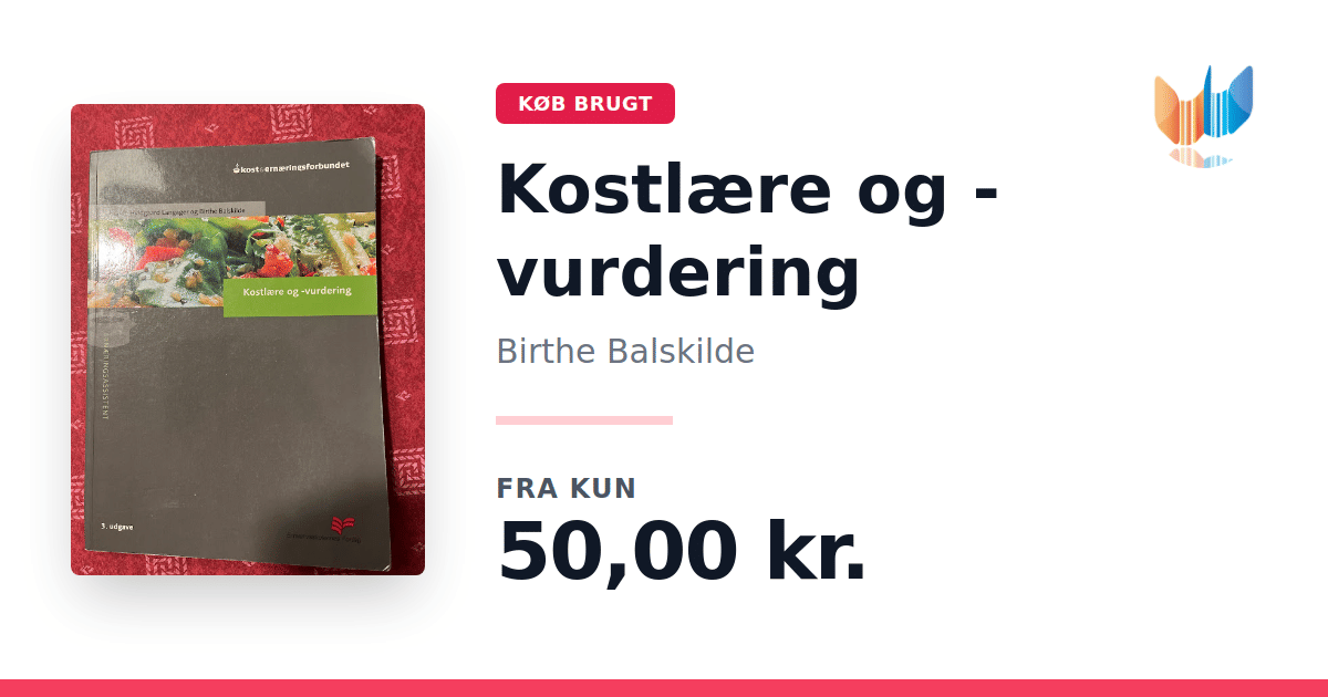Lige nu kan du købe "Kostlære og -vurdering" af Birthe Balskilde til kun 50,00 kr. Bogen du ser her er brugt, og i god stand. Vi har i øjeblikket kun et enkelt eksemplar til salg af "Kostlære og -vurdering", så slå til mens du kan!